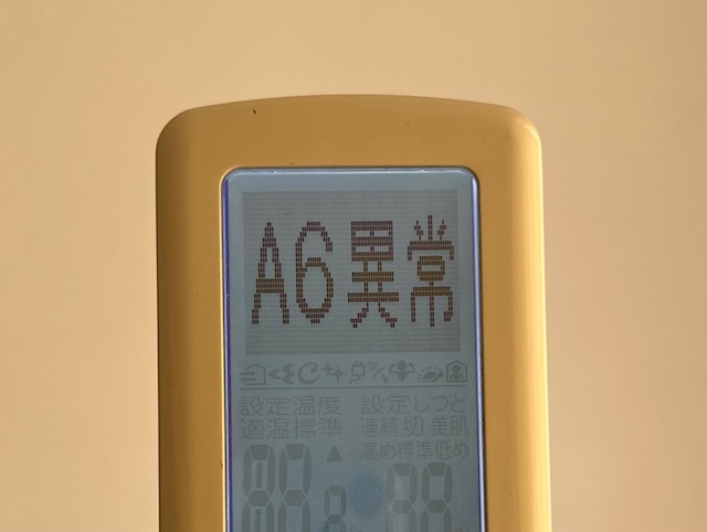 A6異常を感知してエアコンが運転を止めてる状態、だから、コンセント抜いてリセットするとついていたんだそうです。