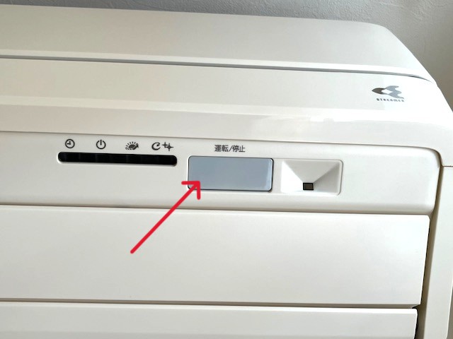 リモコンを使わずに運転できる非常運転ボタン(矢印)も押してみましたが、ダメでした。