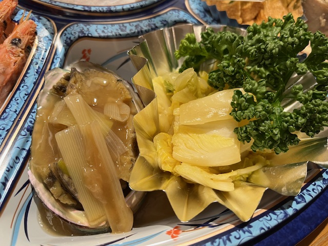 アワビと長葱のオイスターソース煮込み