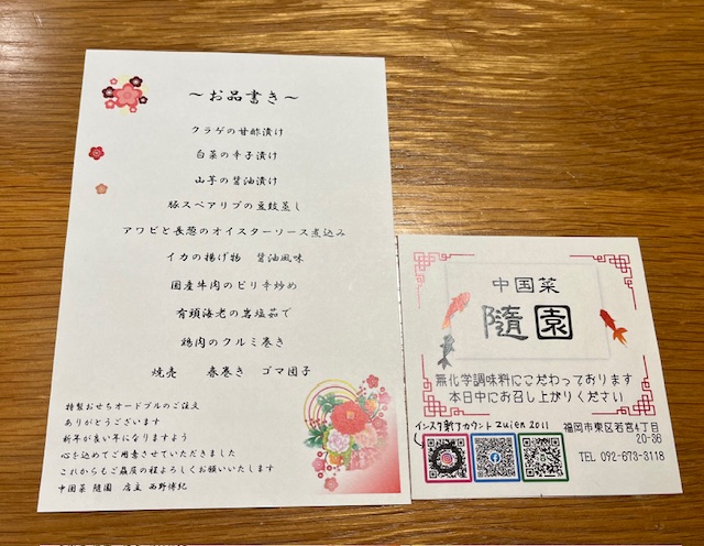 我が家の新年のスタートは、楽しみにしていた福岡市東区の中国菜「随園」さんの中華おせちとともに。