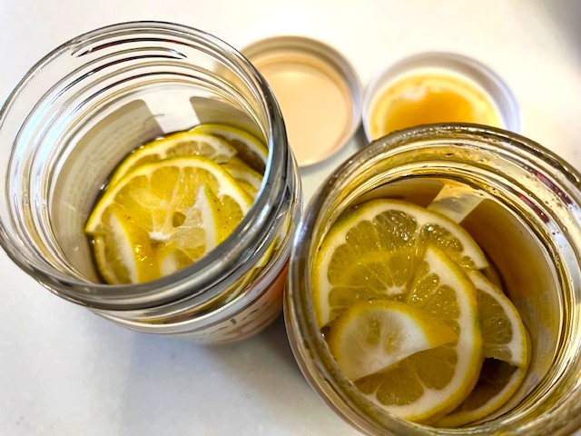 レモン多めが良い方はガラス瓶8分目くらいレモンを入れて、ほんのり香るくらい、がお好きな方は半分くらいレモンを入れます。