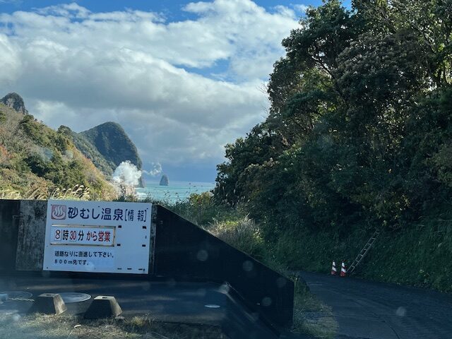 道の駅から程近く、今回の旅でいちばん楽しみにしていたスポット「砂蒸し温泉 砂湯里」へ。