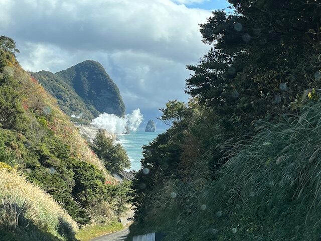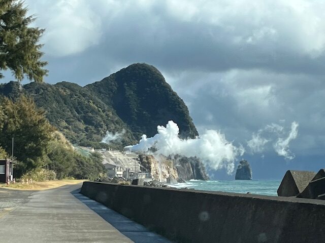 海岸沿いに湯けむり・・・。