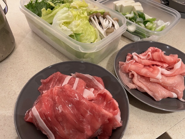 昨日、マルヤガーデンズのお肉屋さんで購入しておいた薩摩黒豚のしゃぶしゃぶ肉をいよいよ解禁!