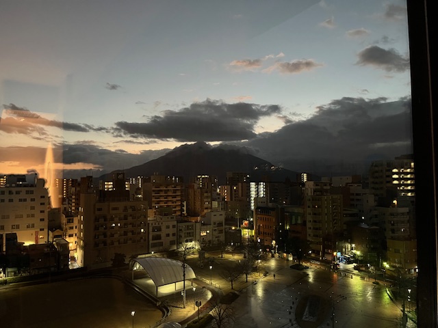 ホテルの窓からどーん!と見える桜島の絶景です。